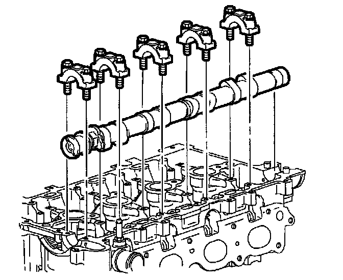 - Tighten camshaft bearing cap bolts in increments of three turns until they are seated.