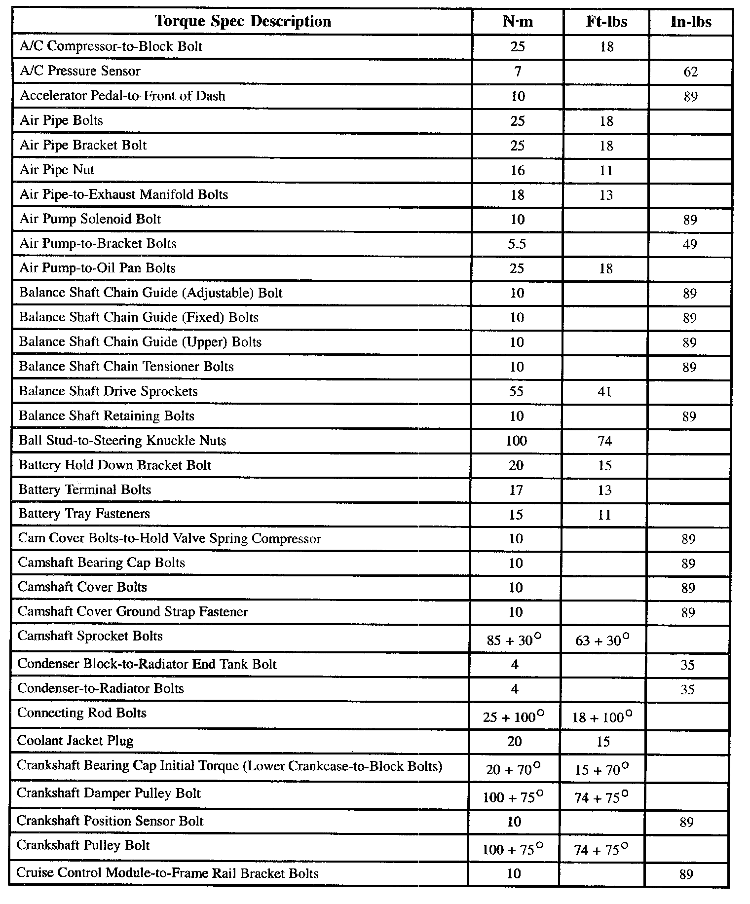 - Camshaft Bearing Cap Bolts: 10 Nm (89 inch lbs.)