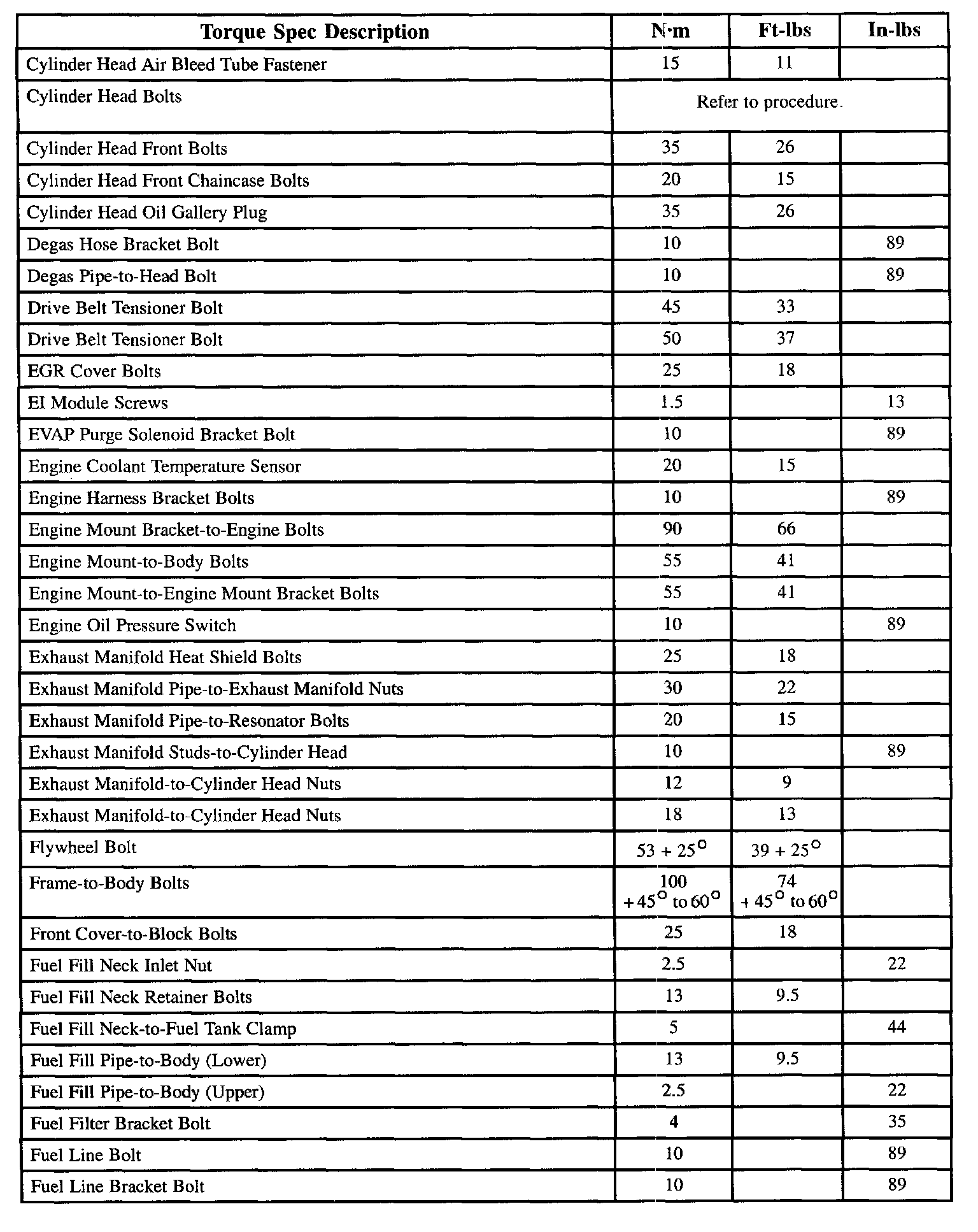 - Cylinder Head Bolts: 30 Nm (22 ft. lbs.) + 155 degrees