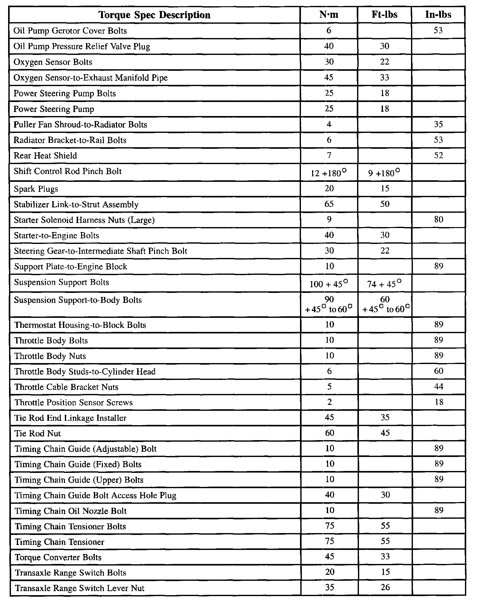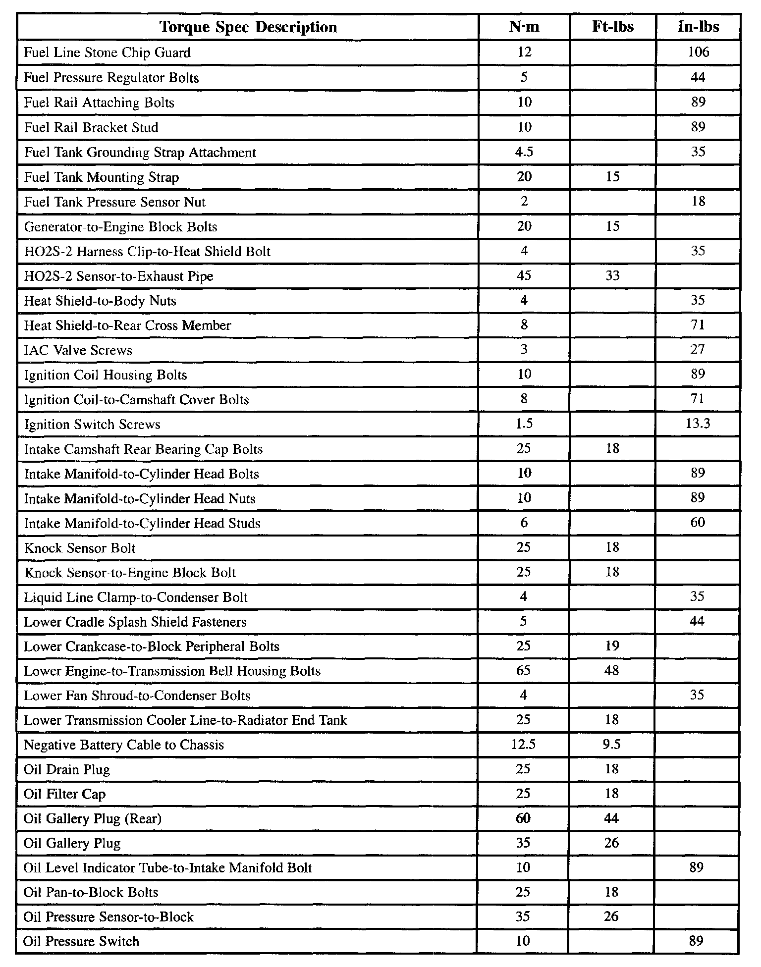 - Intake Camshaft Rear Bearing Cap Bolts: 25 Nm (18 ft. lbs.)