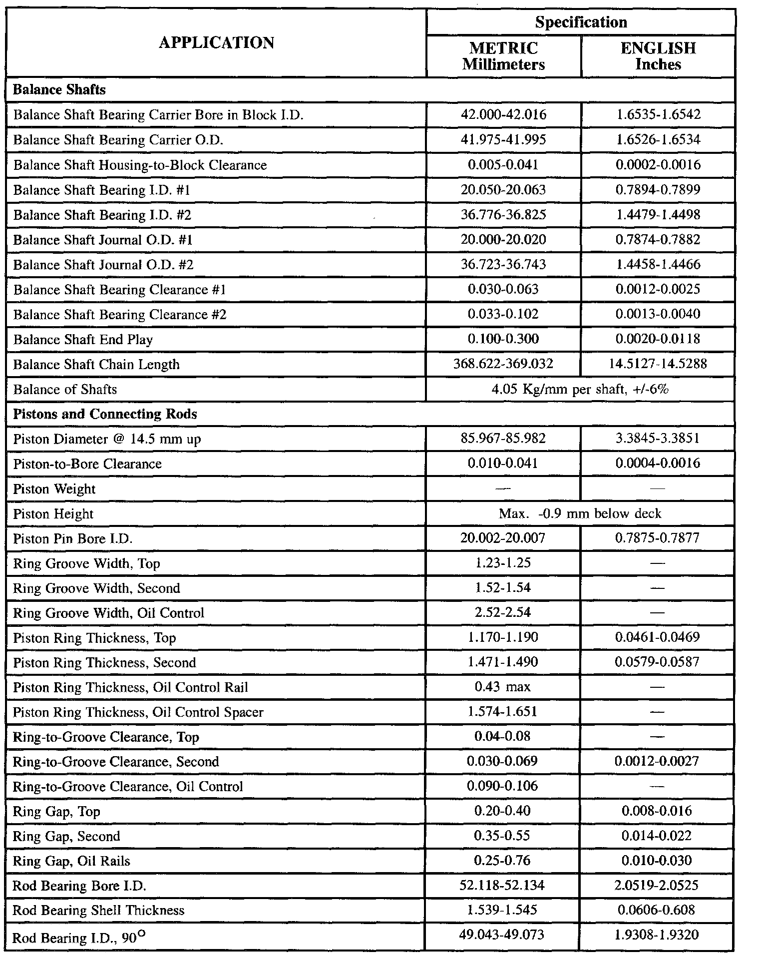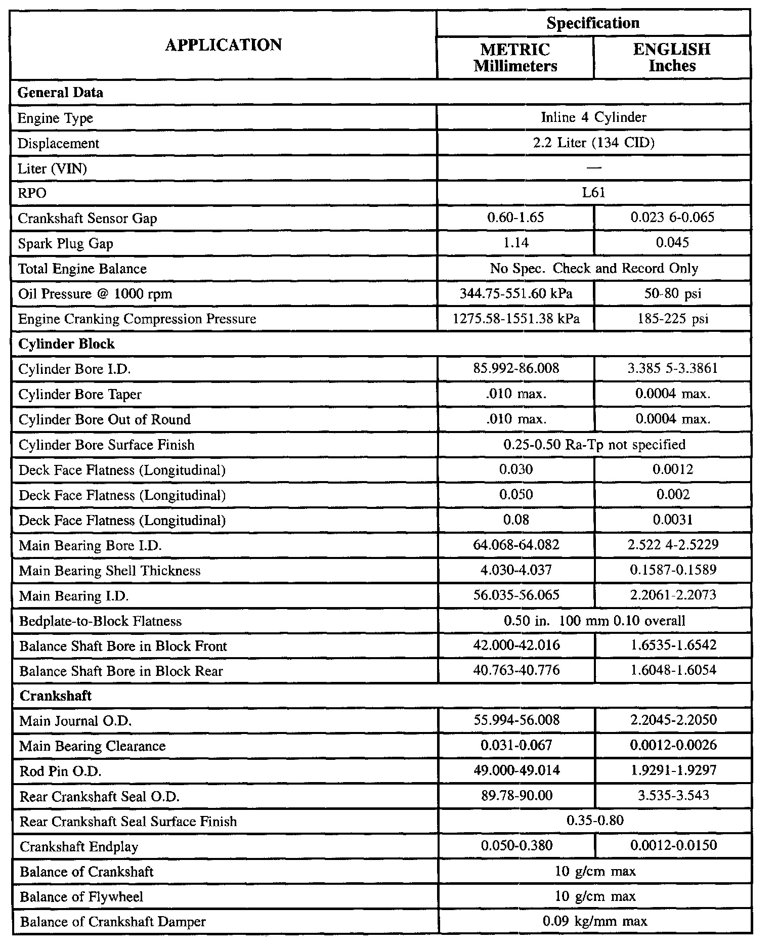 General Engine Data/Specifications