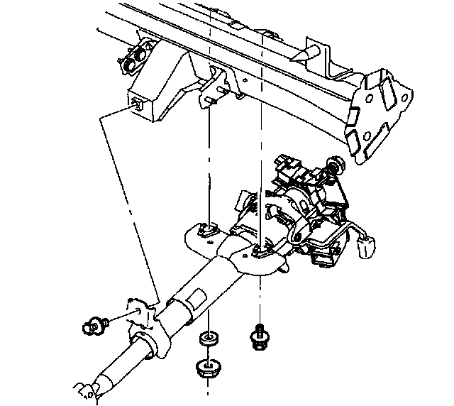 3. Install upper and lower steering column mount bolts and upper steering column mount nut along with locator.