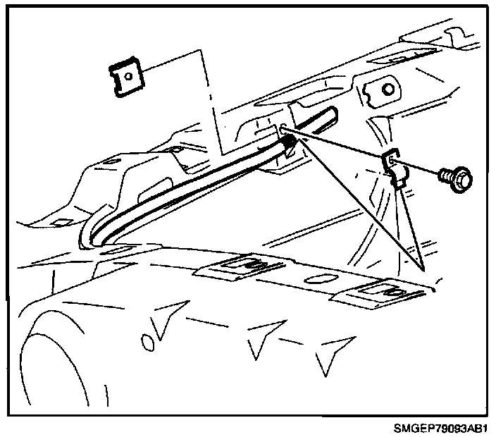 1. Visually inspect the hood release cable at the core support attaching clip.