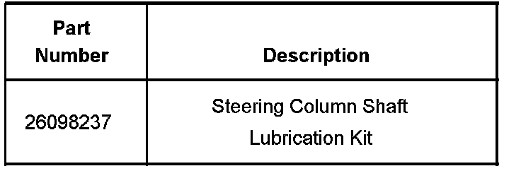 Remove the intermediate steering shaft from the vehicle and lubricate the shaft using Steering Column Shaft Lubrication Kit, P/N 26098237. Follow the service procedure contained in this bulletin.