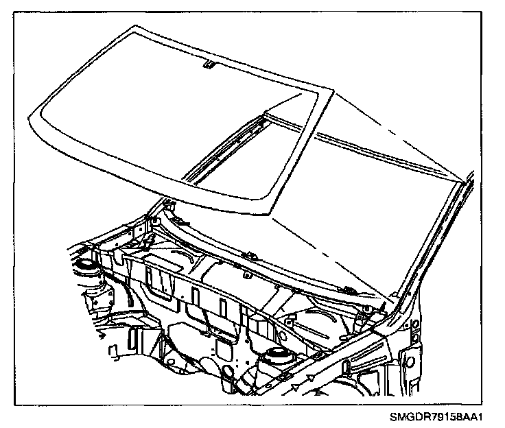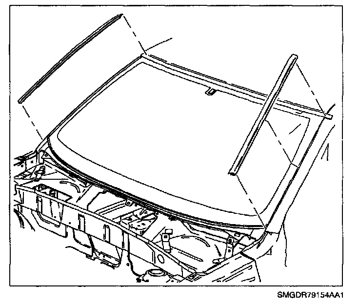 NOTE: Until the urethane has cured, air pressure from a closing door may cause the windshield to move. To prevent this, lower one of the rear door windows a minimum of 76 mm (3 in.) before closing the door.