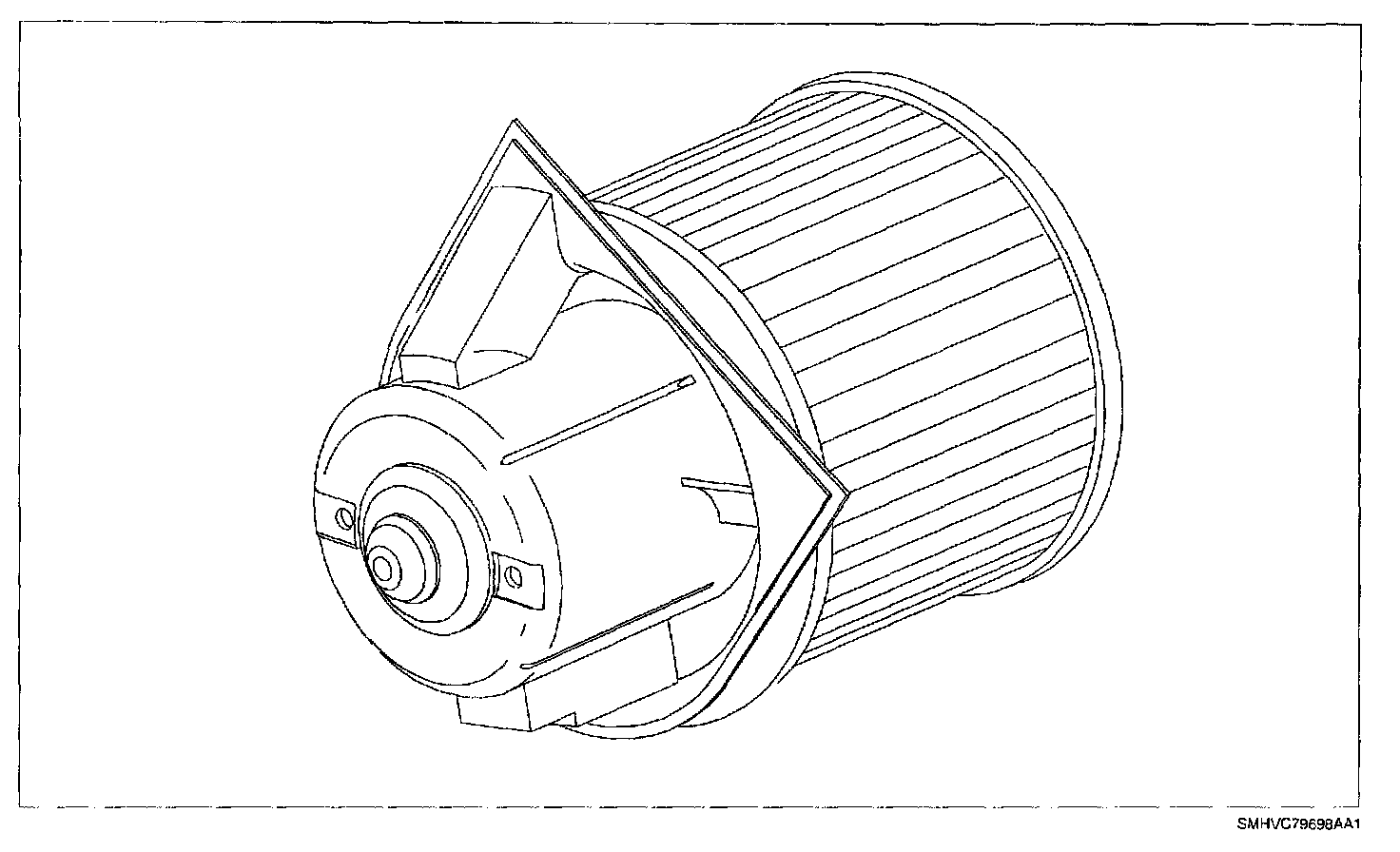 The blower motor is a permanent magnet motor with a split squirrel cage fan. Its purpose is to provide air flow to the passenger compartment on standard HVAC vehicles. The blower speeds are controlled in all modes by a five position rotary switch. On automatic climate control vehicle the blower speeds are variable dependent on the rotary knob position.