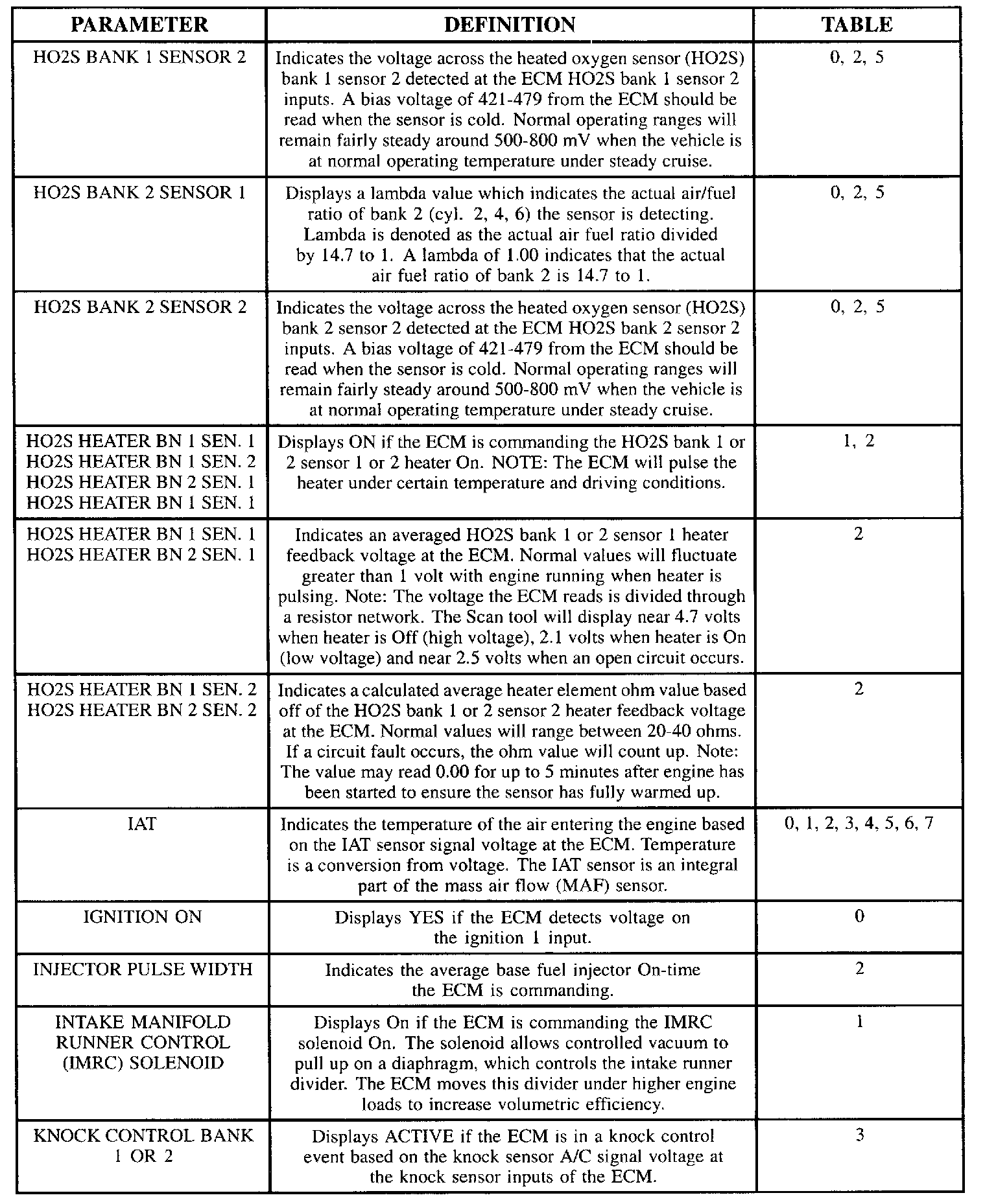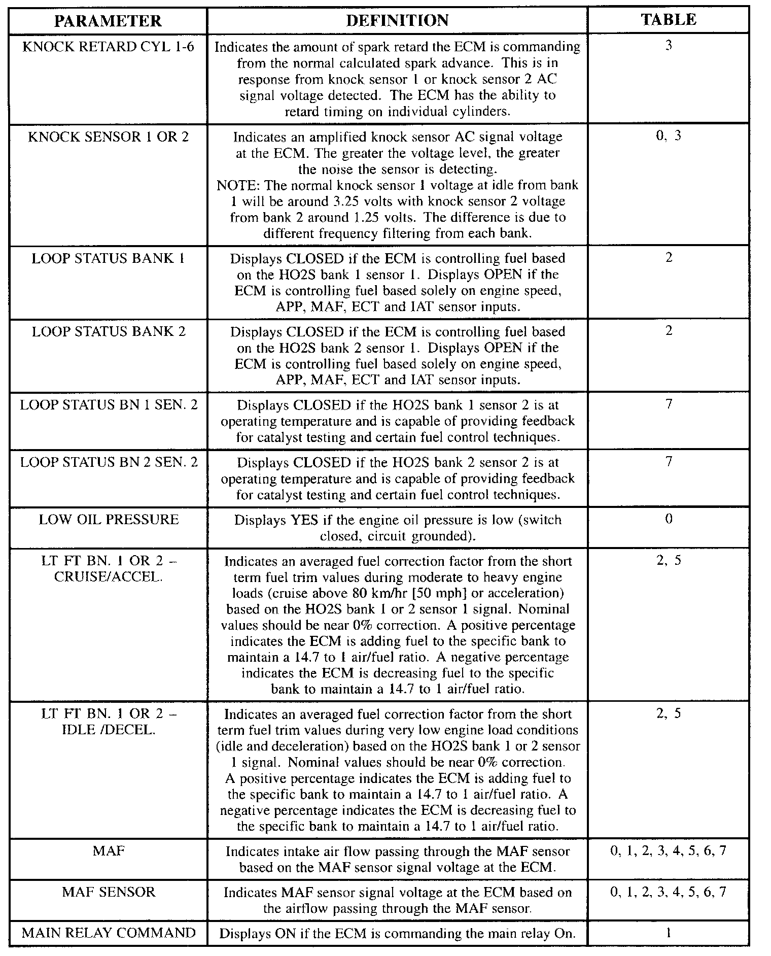 Scan Tool Data Definitions For Powertrain - Engine Data: