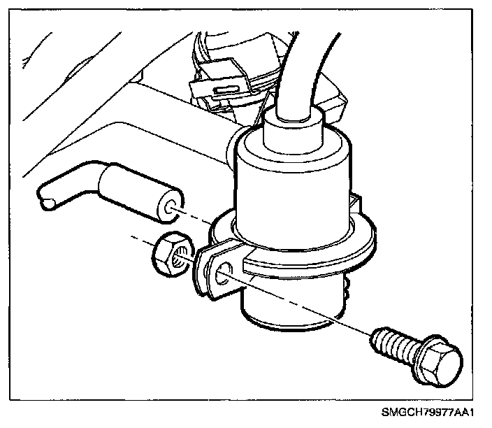 3. Install fuel pressure regulator clamp and retaining bolt. Tighten bolt until clip comes together.