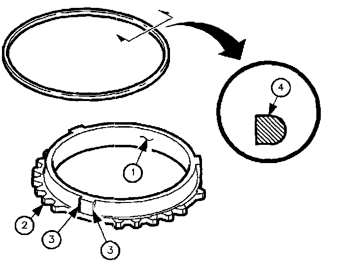 GEAR SYNCHRONIZER BLOCKING RING INSPECTION1. Inspect synchronizer blocker ring friction surfaces (1) for wear or damage.