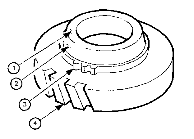 7. Inspect the clutching teeth (3) for excessive wear, chipping. or cracks.