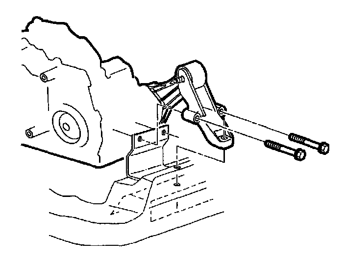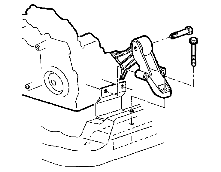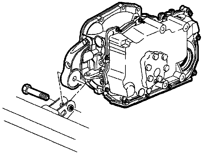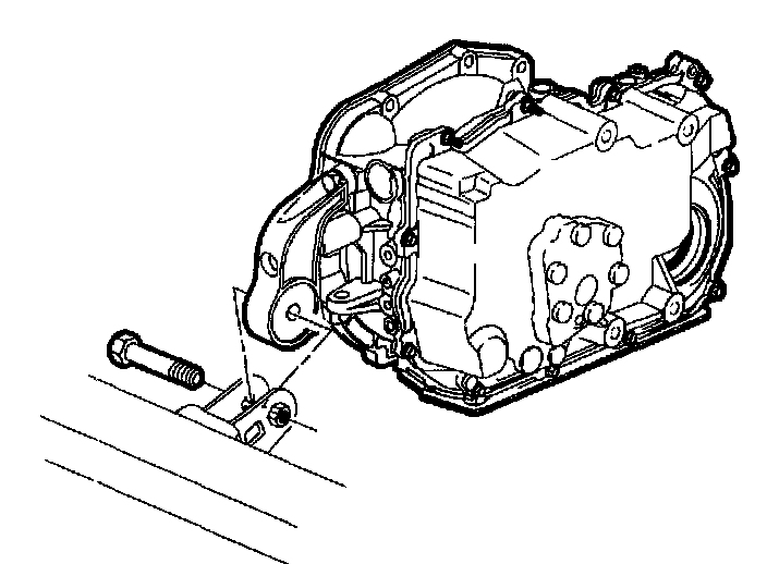 2. Remove rear transaxle mount through bolt, and transaxle mount-to-frame bolt.