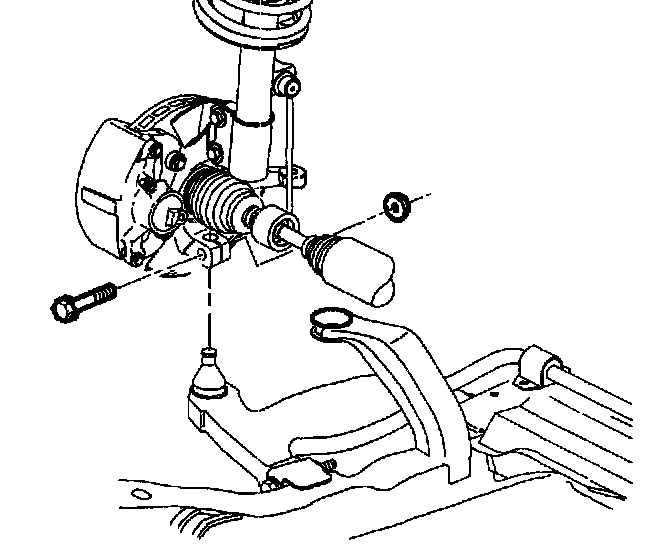 NOTICE: Hold ball stud from turning when removing nut. The boot can become torn and damaged if the ball stud turns.