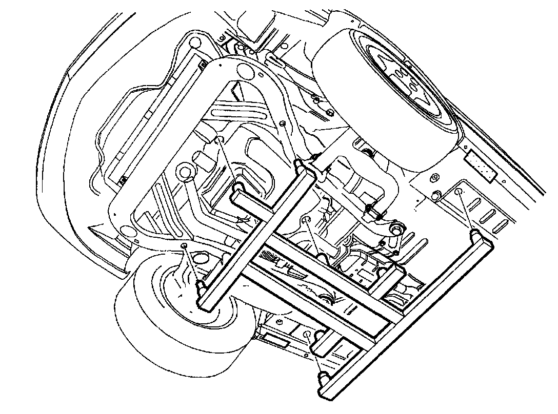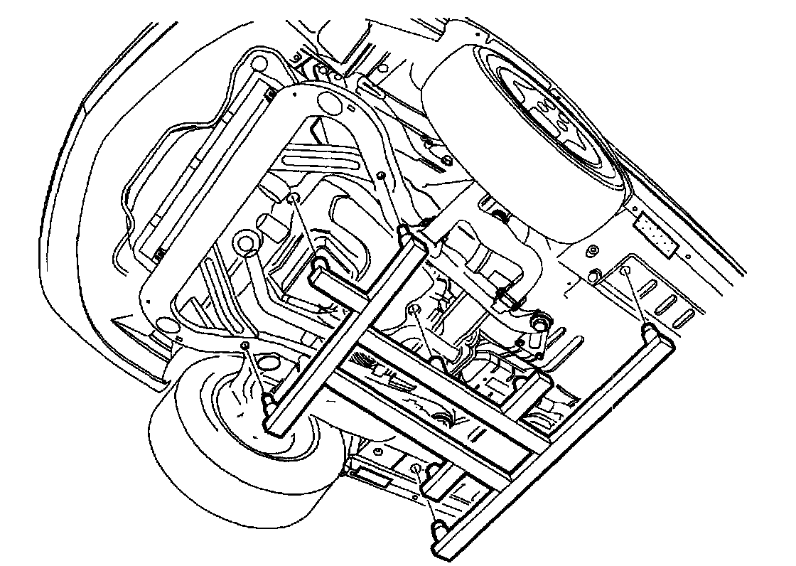 22. Remove suspension support cage nuts from the body. Discard cage nuts and support bolts, as new nuts and bolts must be used for assembly.