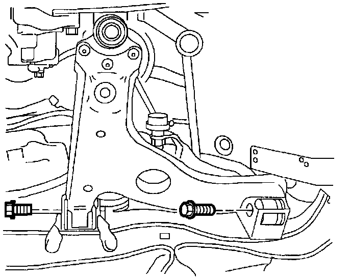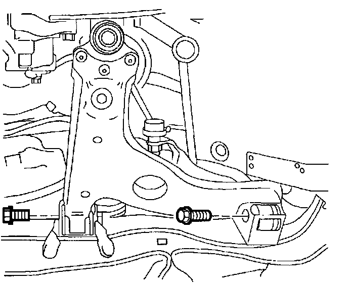 3. Remove control arm-to-frame assembly bolts and discard bolts.