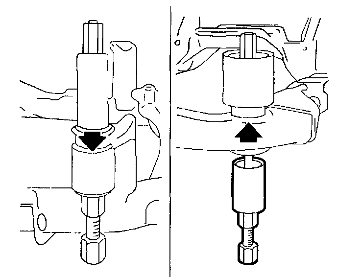 5. Using tools Bushing Remover/Installer KM-671, Bushing Remover/Installer KM-907 KM-907-11, KM-907-12 and KM-907-30, press out all damping bushings.