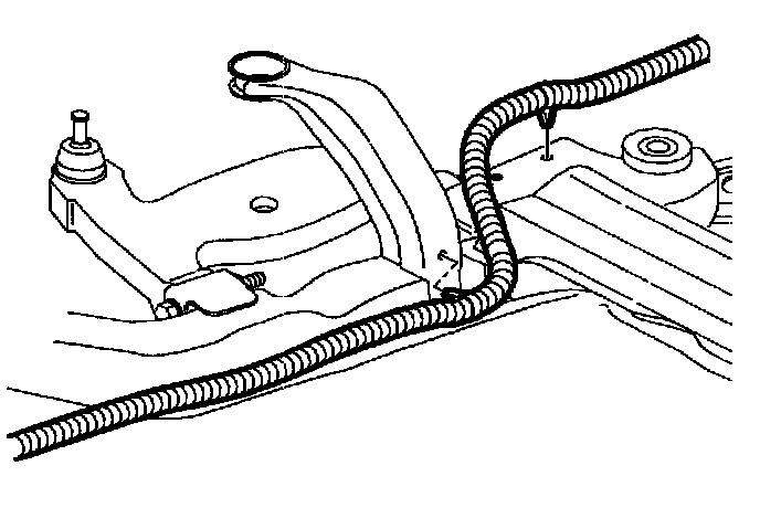 18. Remove A/C line to frame attachment clip at front of vehicle.