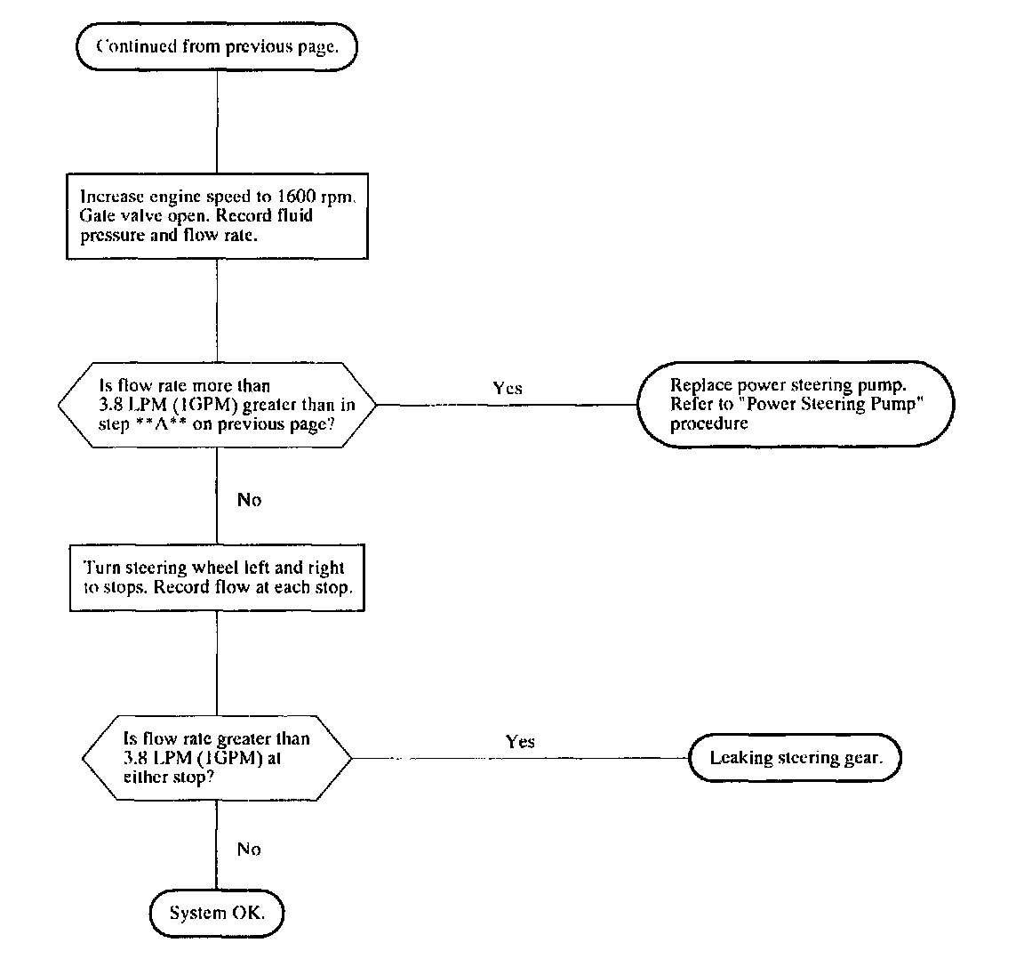 7. With gate valve open, increase engine speed to 1600 rpm and record power steering fluid pressure and flow rate.
