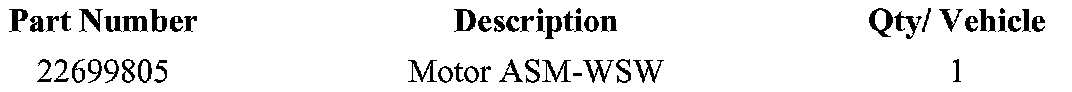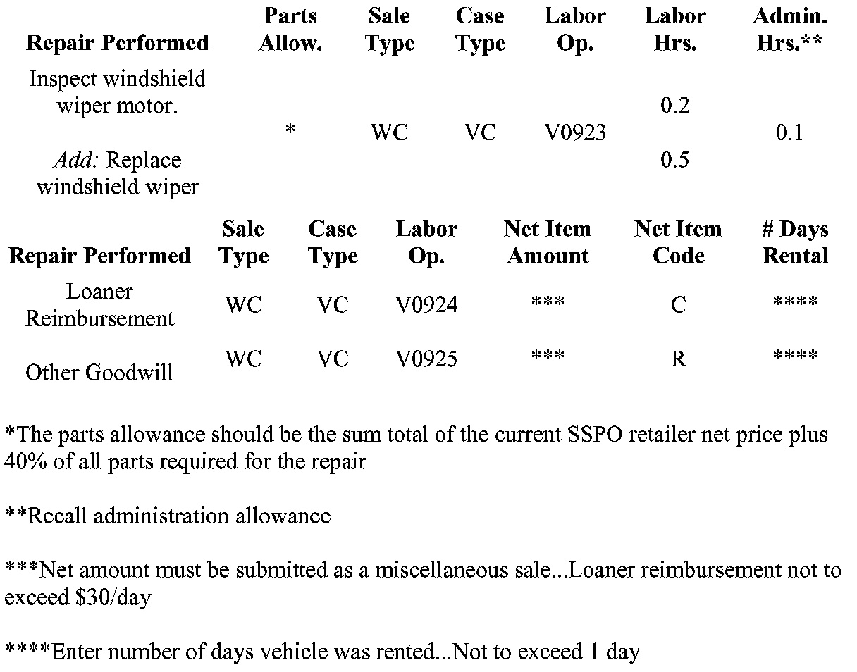 A pre-shipment of the windshield wiper motor (Motor ASM-WSW) required to perform this recall has been automatically sent to retailers. These windshield wiper motors are to aid the retailers in recall preparation and will ensure minimal customer inconvenience.