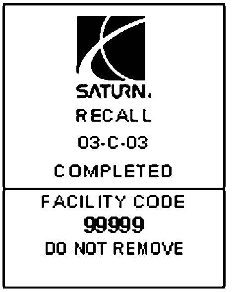 As a reminder, additional labels may be ordered from Saturn publications (1-800-828-2112, prompt 3, Item Number S03 00013A for the Recall Identification Label, and item number S03 00013B for the clear Protective Cover).