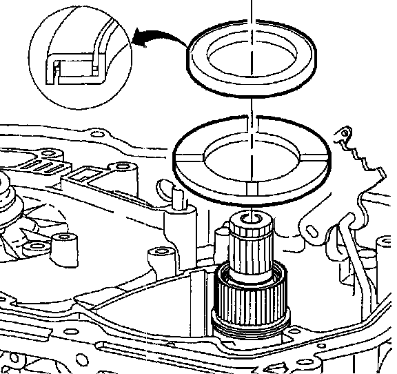 IMPORTANT: Position the tab of the selective thrust washer in recessed area for the coast clutch retainer and ball assembly.