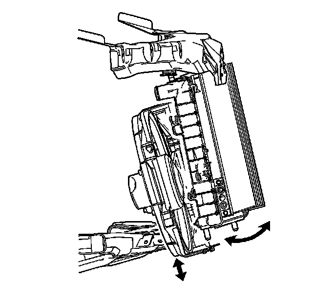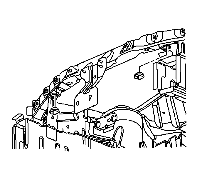 5. Raise the radiator and condenser into position. Verify that the upper radiator mount pins align with the upper radiator mounts.