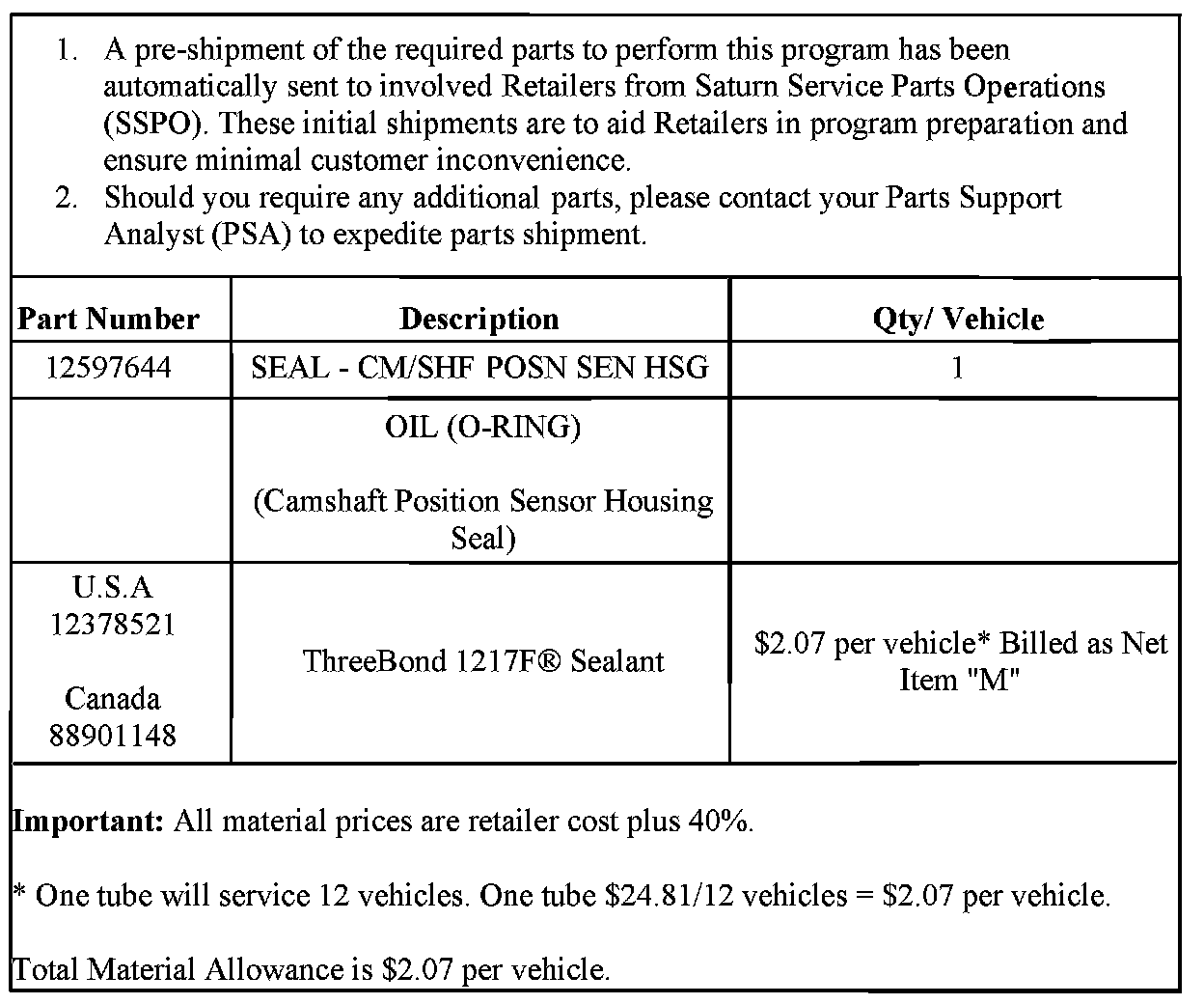 Saturn Retailers in Canada: The Canadian version of this bulletin follows the U.S. version.