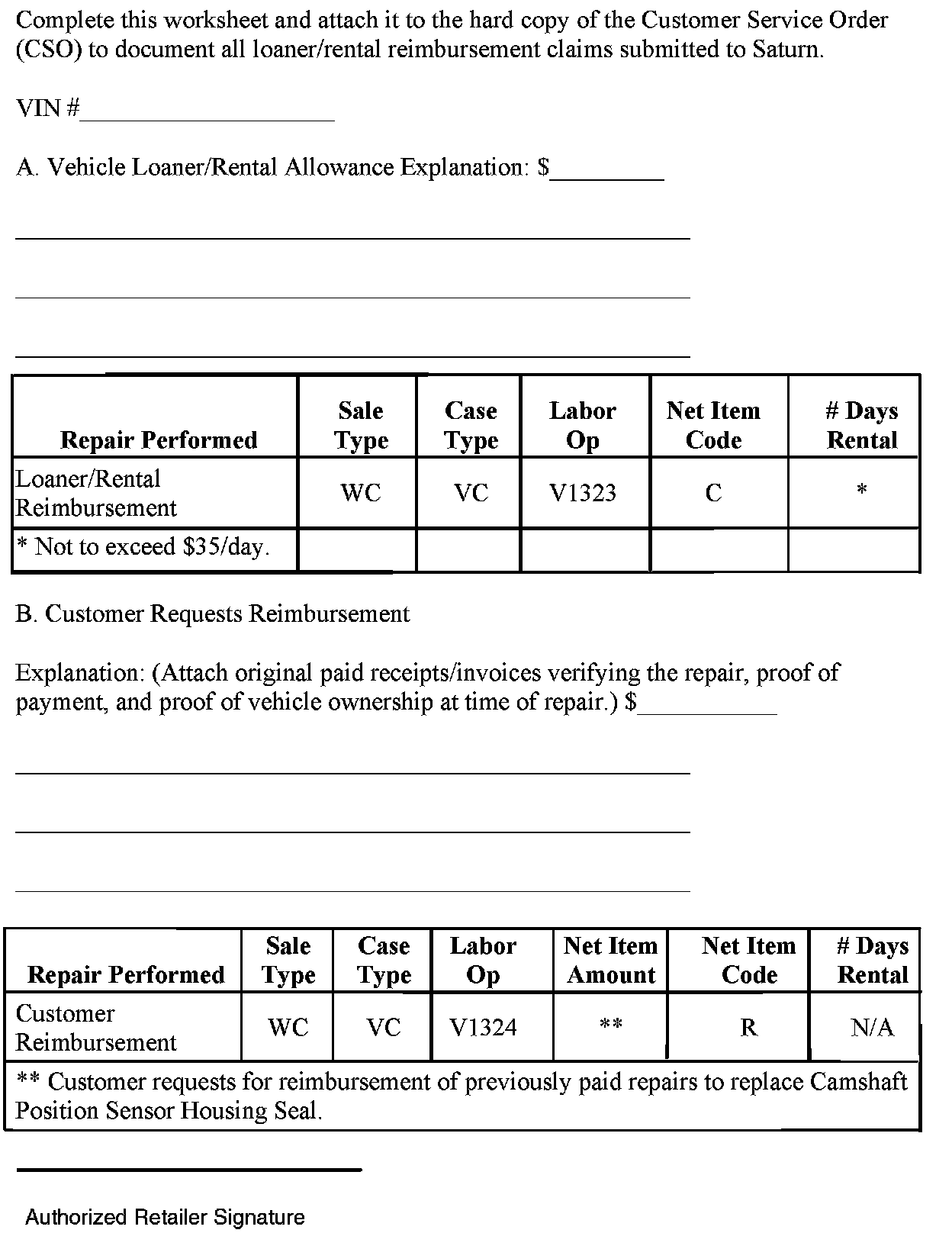 Requests for reimbursement may include parts, labor, fees and taxes. Reimbursement may be limited to the amount the repair would have cost if completed by an authorized Saturn retailer.