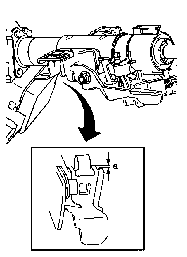 2. Inspect the upper steering column mounting capsule nuts for movement (a). If the steering column collapse measurement is greater than 3 mm than the steering column upper jacket must be replaced.