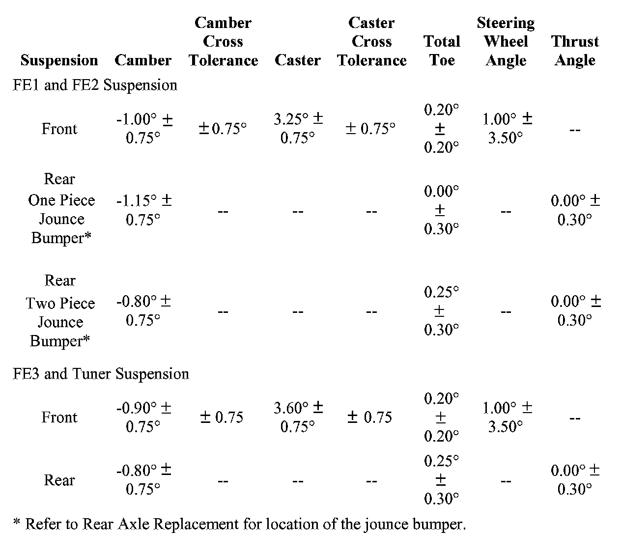 Wheel Alignment Specifications