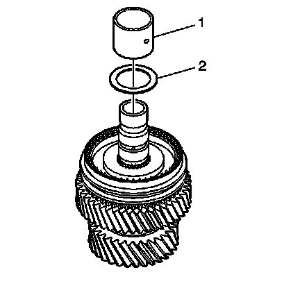 7. Install the thrust washer (2) and the bearing collar (1) using an appropriate tool and a hydraulic press.