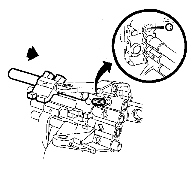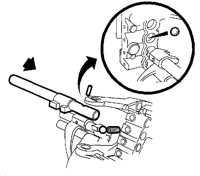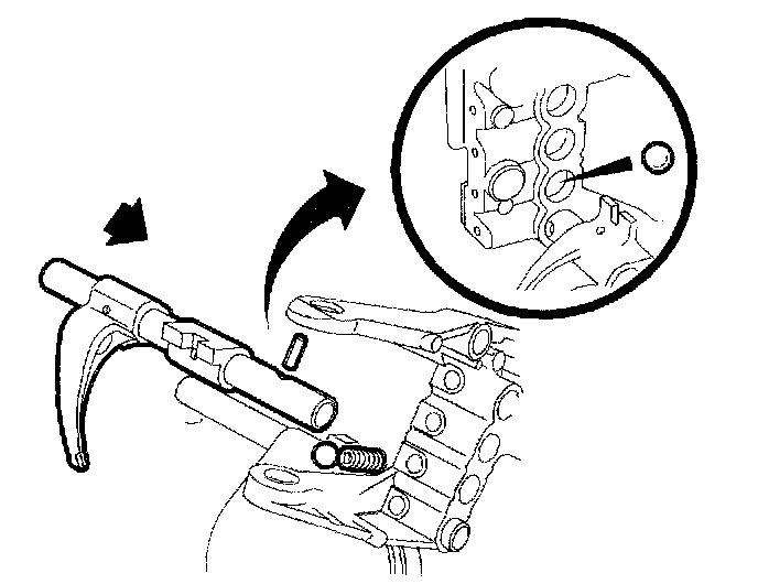8. Install the 5th detent spring and ball. Compress the ball and spring and install the 5th shift shaft. Place the shaft in the neutral position.