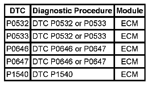 DTCs P0532 - P1540: