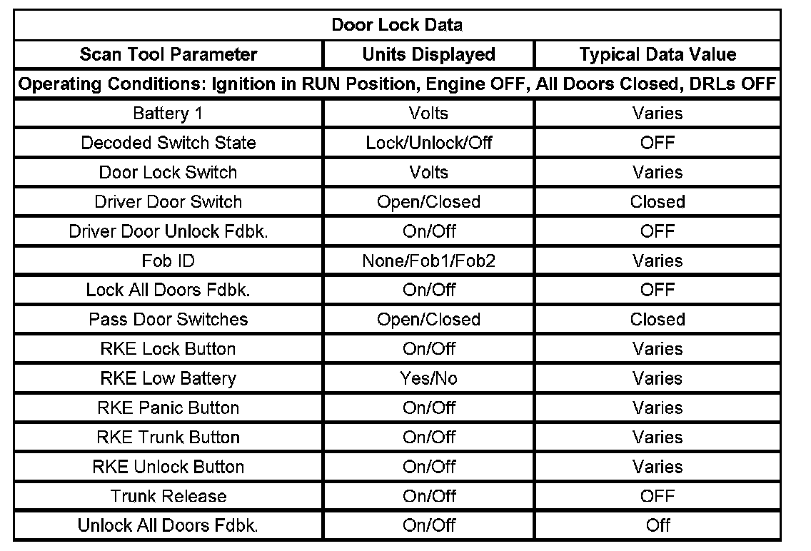 Scan Tool Data List - Door Lock Data