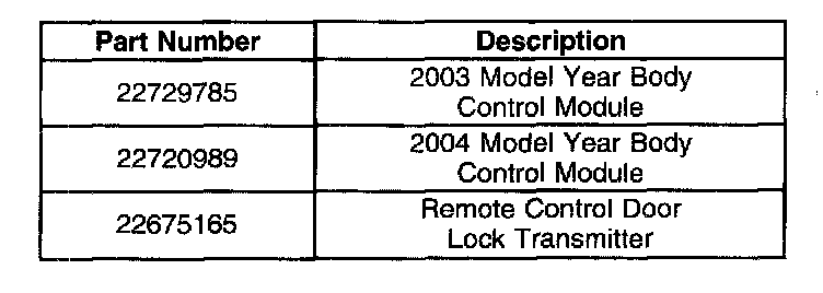 The purpose of this bulletin is to provide technical instructions for adding RKE to I0N2 vehicles not equipped with RKE as original equipment. The parts required to perform this procedure are a service body control module (BCM) and key fobs (transmitters). The service BCM contains the necessary hardware to allow RKE to function. This service BCM is the production part used in 10N2 vehicles with the convenience package and in all I0N3 vehicles. ION1 vehicles do not have power door locks; therefore adding RKE to ION1 vehicles is not possible.