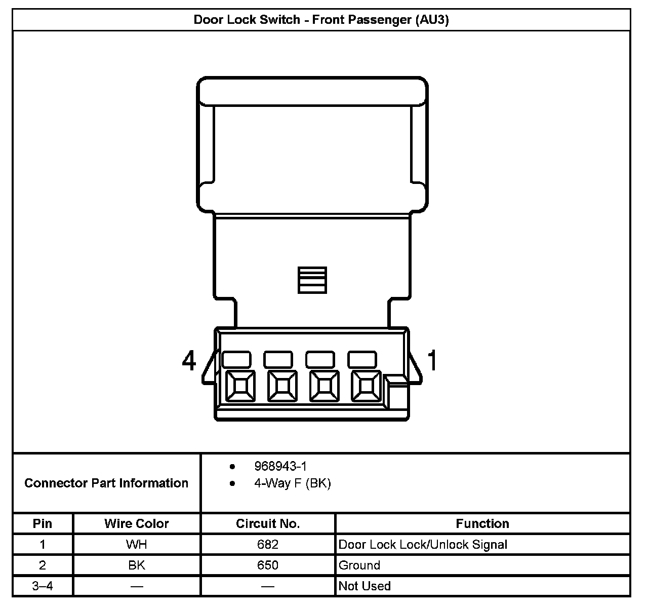 Door Lock Switch - Front Passenger (With RPO Code AU3):
