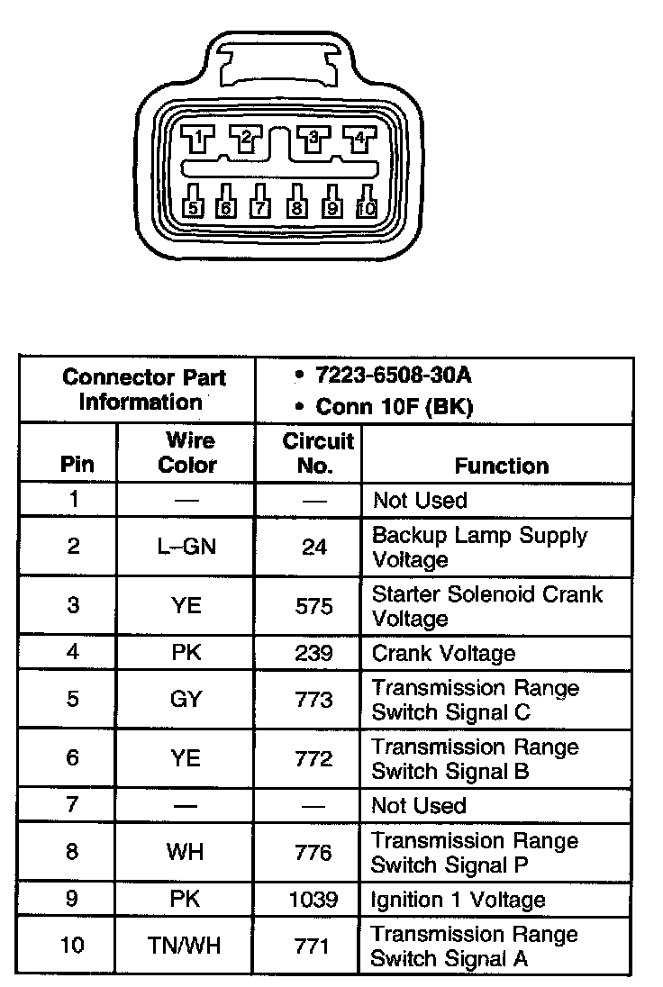 Transmission Park/Neutral Position Switch Assembly Connector, Wiring Harness Side