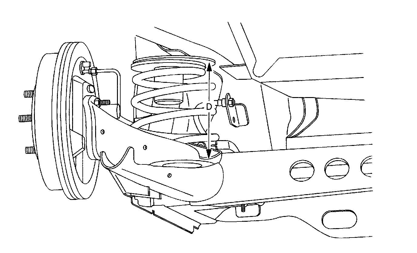 The D height dimension measurement determines the proper rear end ride height. There is no adjustment procedure. Repair may require replacement of suspension components.
