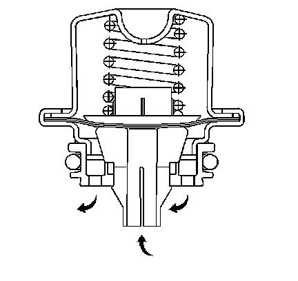 The fuel pressure regulator attaches to the fuel return pipe on the fuel sender assembly. The fuel pressure regulator is a diaphragm relief valve. The diaphragm has fuel pressure on one side and regulator spring pressure on the other side. Fuel pressure is controlled by a pressure balance across the regulator. The fuel system pressure is constant and is no longer a function of engine load or manifold vacuum. A software bias compensates the injector on-time based on the signal from the MAP sensor.