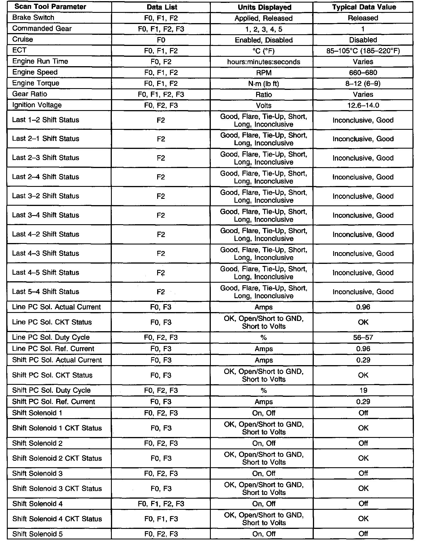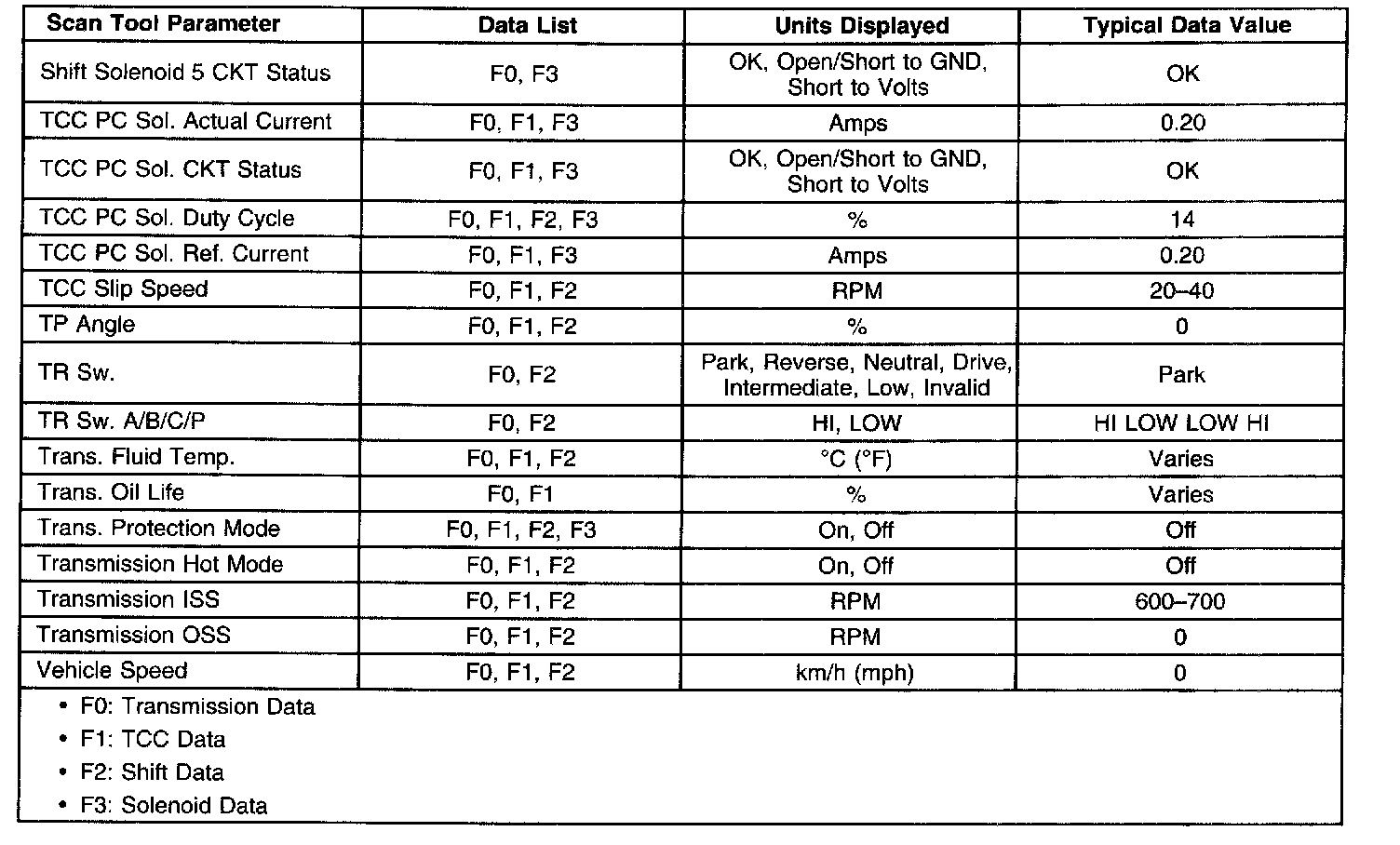 AF23-5 AUTOMATIC TRANSAXLETransmission Scan Tool Data List