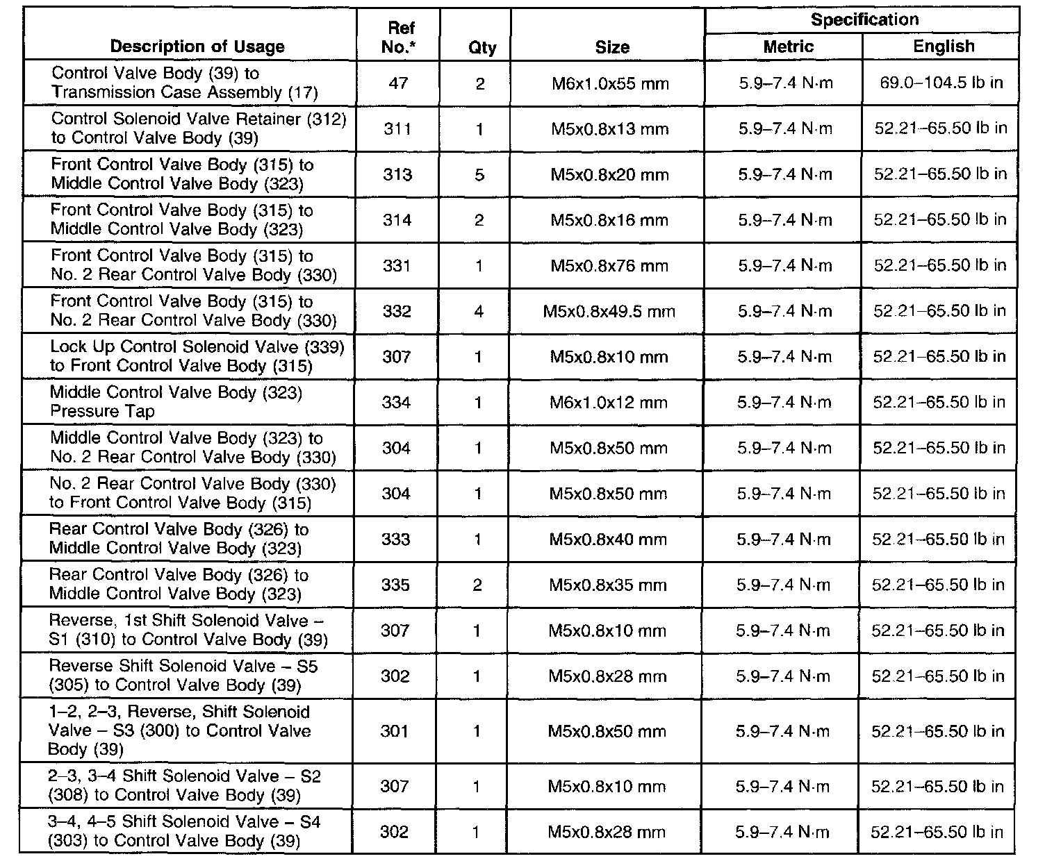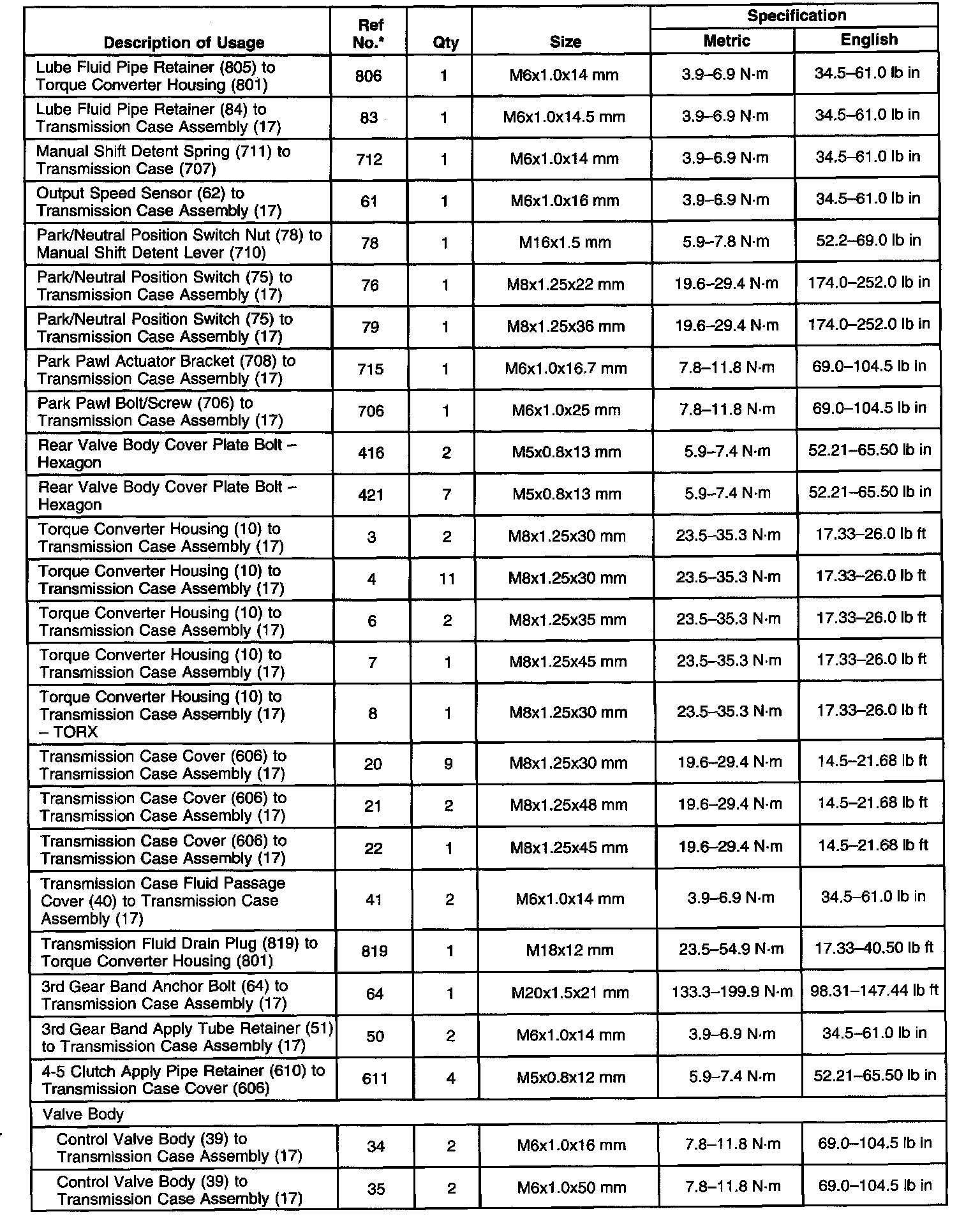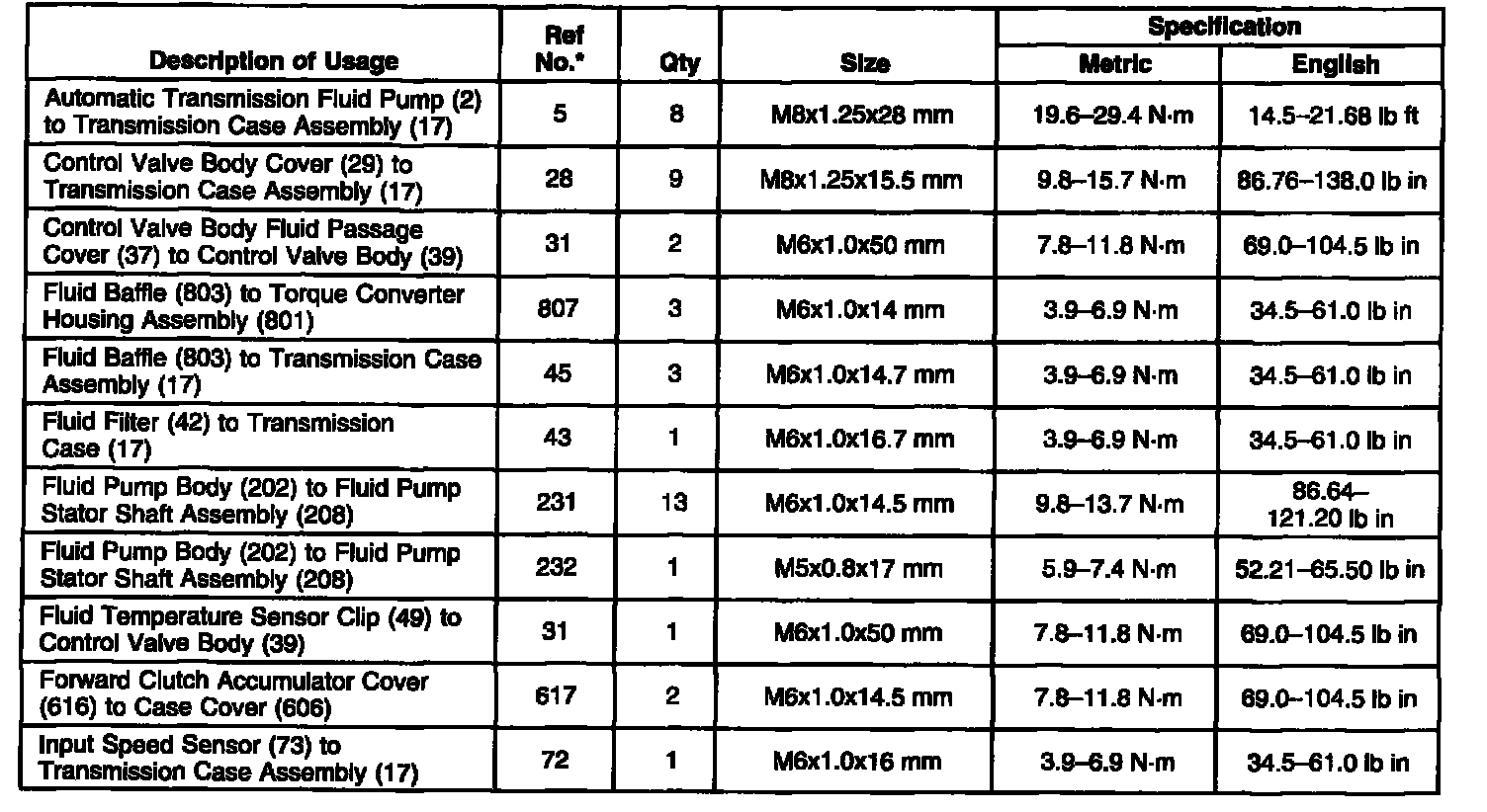Fastener Tightening Specifications