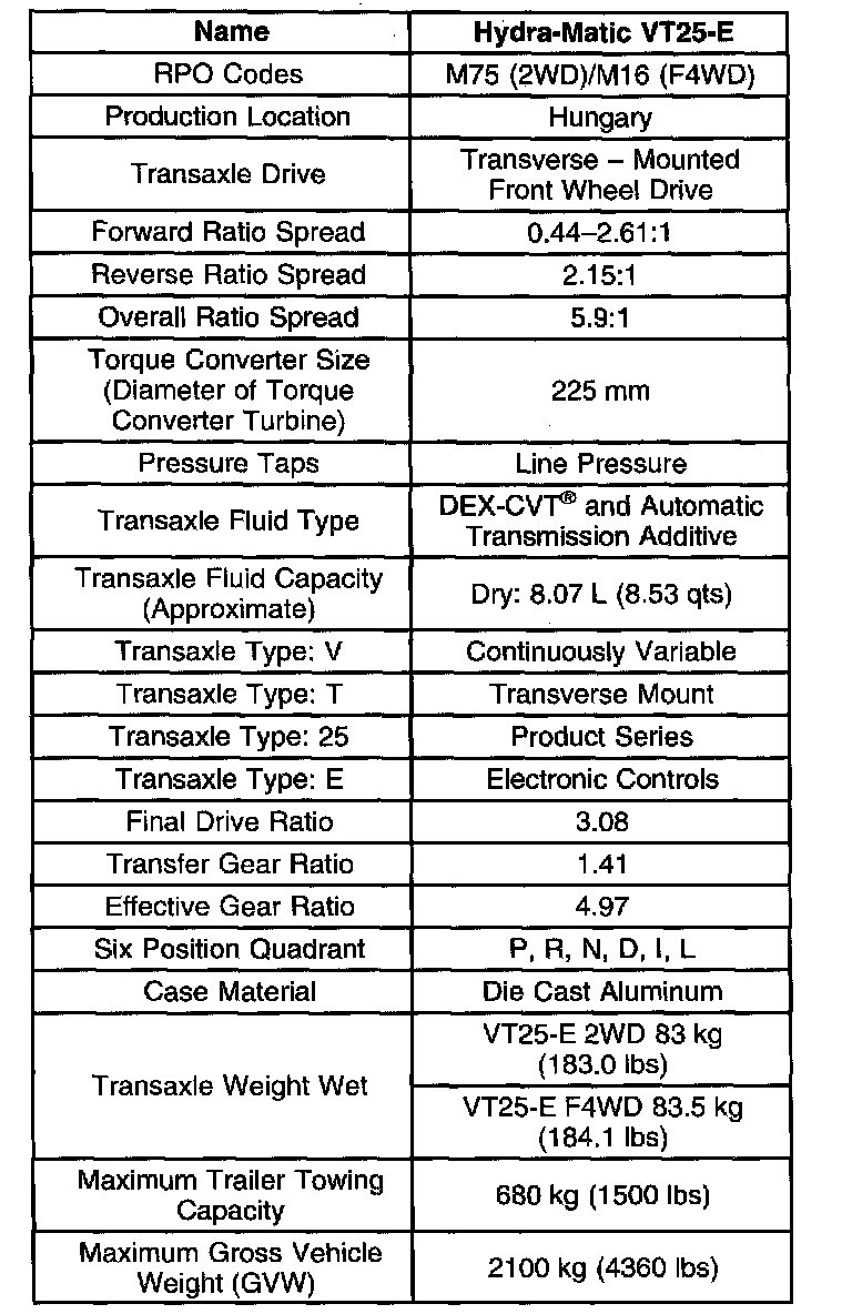 Transmission General Specifications
