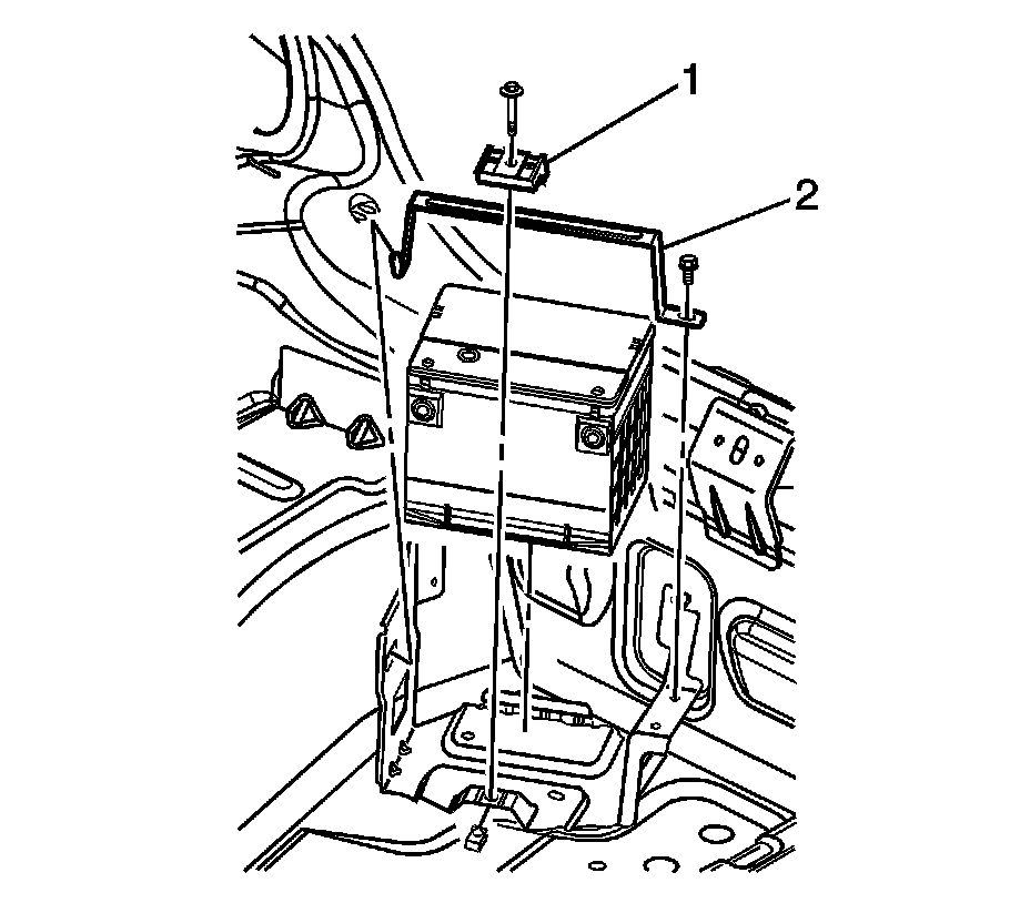 3. Remove the battery hold down retainer bolt and retainer (1).