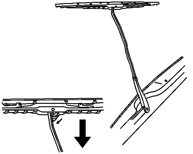 1. Install the hook of the wiper arm through the opening in the new wiper blade.