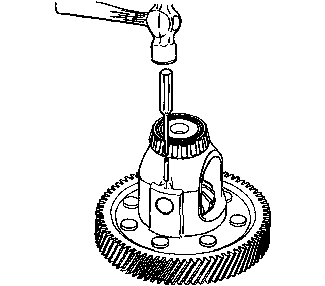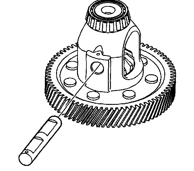 5. Using a small punch and a hammer, install a NEW pinion gear shaft pin through the front differential carrier assembly and through the pinion shaft in order to retain the pinion shaft.