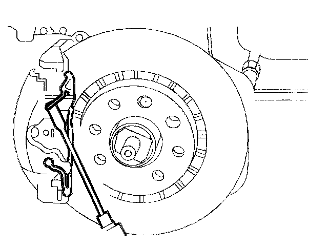 3. Remove the brake hose from the caliper. Plug the openings in the caliper and the hose to avoid fluid loss and contamination.