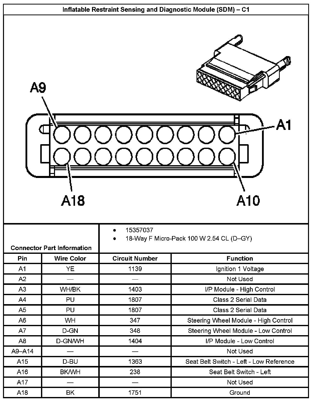 Inflatable Restraint Sensing And Diagnostic Module (SDM) - C1: