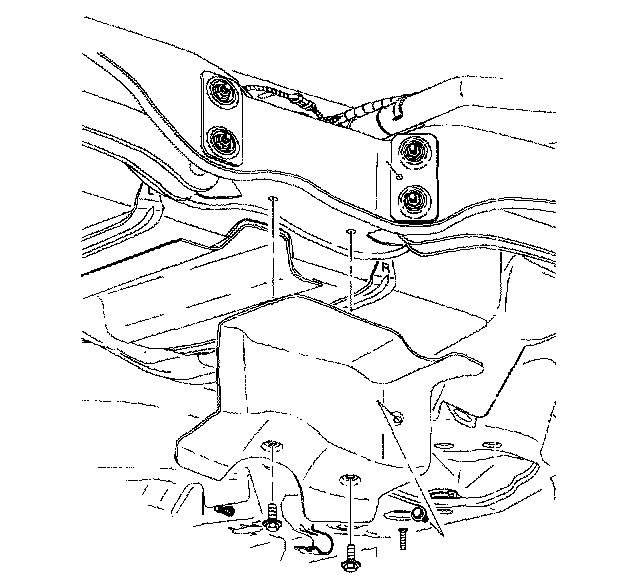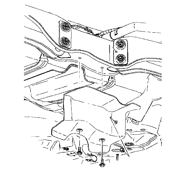 2. Remove the fuel tank heat shield to the rear suspension support fasteners.