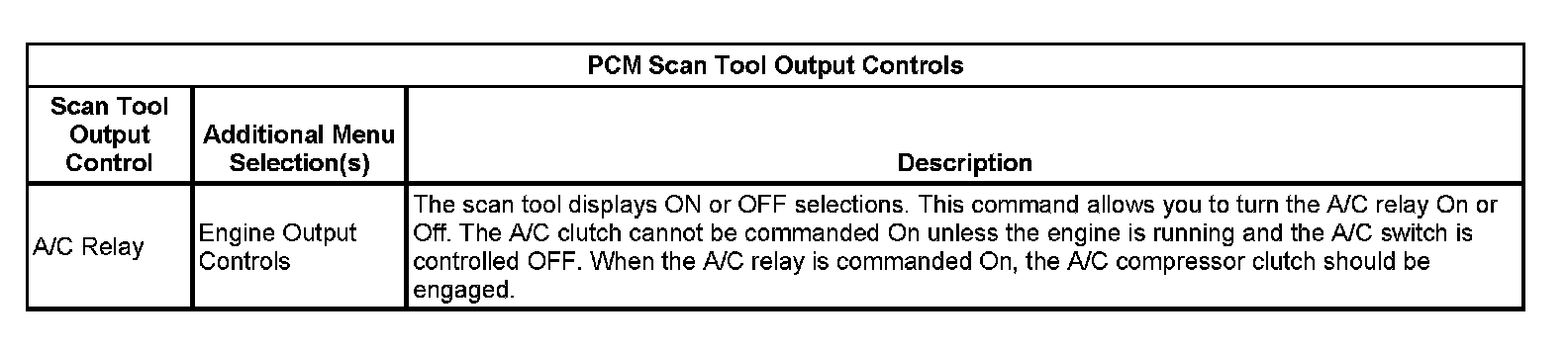 PCM Scan Tool Output Controls:
