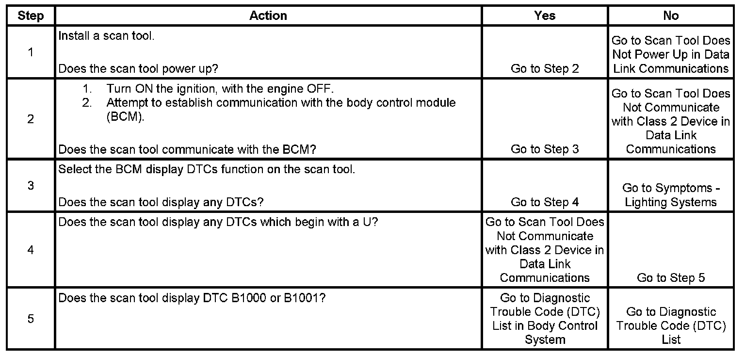 3. The lighting systems symptoms will determine the correct diagnostic procedure to use when no DTCs are present.