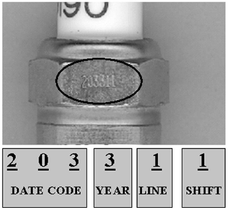 There is a six-digit number stamped on each spark plug. The first three numbers of this six-digit number provide the date code.